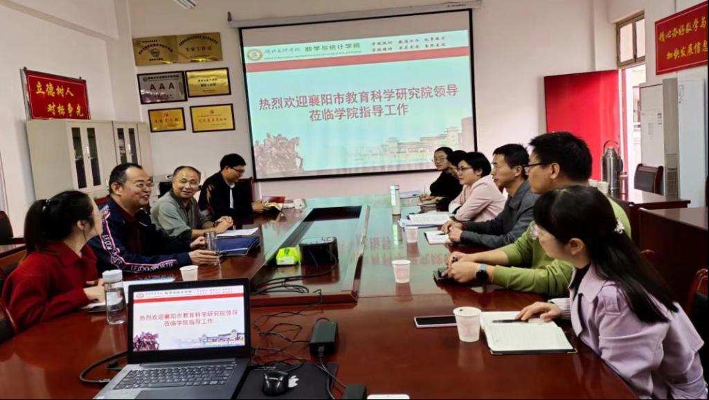 (数学与统计学院 通讯员 余晓娟)10月24日下午,襄阳市教育科学研究院副院长郭强一行来到数统学院,就小学阶段数学和科学素养评价问题开展调研和交流。数统学院党委书记刘浩、襄阳市教育科学研究院小学科学教研员宋晓青、数统学院和物电学院相关教师参加了调研和交流。调研交流会由襄阳市教育科学研究院小学数学教研员魏杰主持。