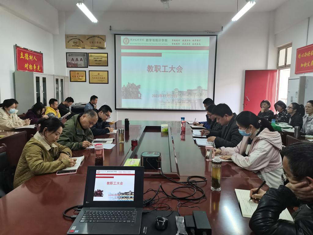 (数学与统计学院 通讯员 耿付荃)11月23日,数学与统计学院召开教职工大会,开展政治理论学习,安排近期工作。会议由学院党委书记刘浩主持。
