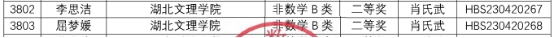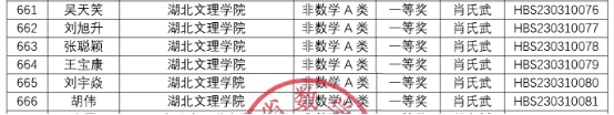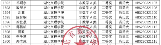 (数学统计学院 通讯员 肖氏武)第十二届(2023年)湖北省大学生数学竞赛成绩近日揭晓。我校数学与应用数学专业张跃进等三位同学获数学专业组省一等奖;数学与应用数学专业费云瑞等八位同学获数学专业组省二等奖。物理学专业吴天笑等八位同学获非数学类省一等奖;电子信息专业祁明宇等十一位同学获非数学类省二等奖。