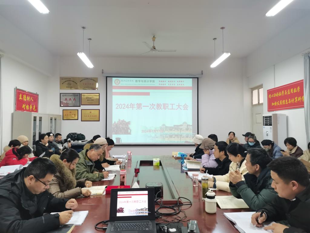 (数学与统计学院 通讯员 耿付荃)1月17日,数学与统计学院召开2024年第一次教职工大会,开展政治理论学习,安排寒假工作。会议由学院党委书记刘浩主持。