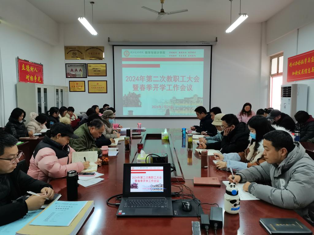 (数学与统计学院 通讯员 耿付荃)人勤春来早,奋斗正当时。2月25日,数学与统计学院召开2024年第二次教职工大会暨春季学期开学大会,开展政治理论学习,安排春季学期重点工作。会议由学院党委书记刘浩主持。