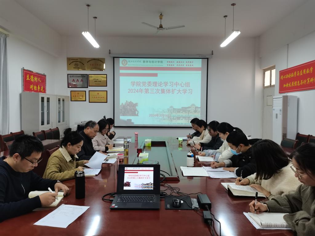(数学与统计学院 通讯员 耿付荃)3月14日,数学与统计学院举行党委理论学习中心组2024年第三次集体扩大学习。学院领导、党委委员、党支部书记、各办主任、团委书记、辅导员参加会议。会议由学院党委书记刘浩主持。