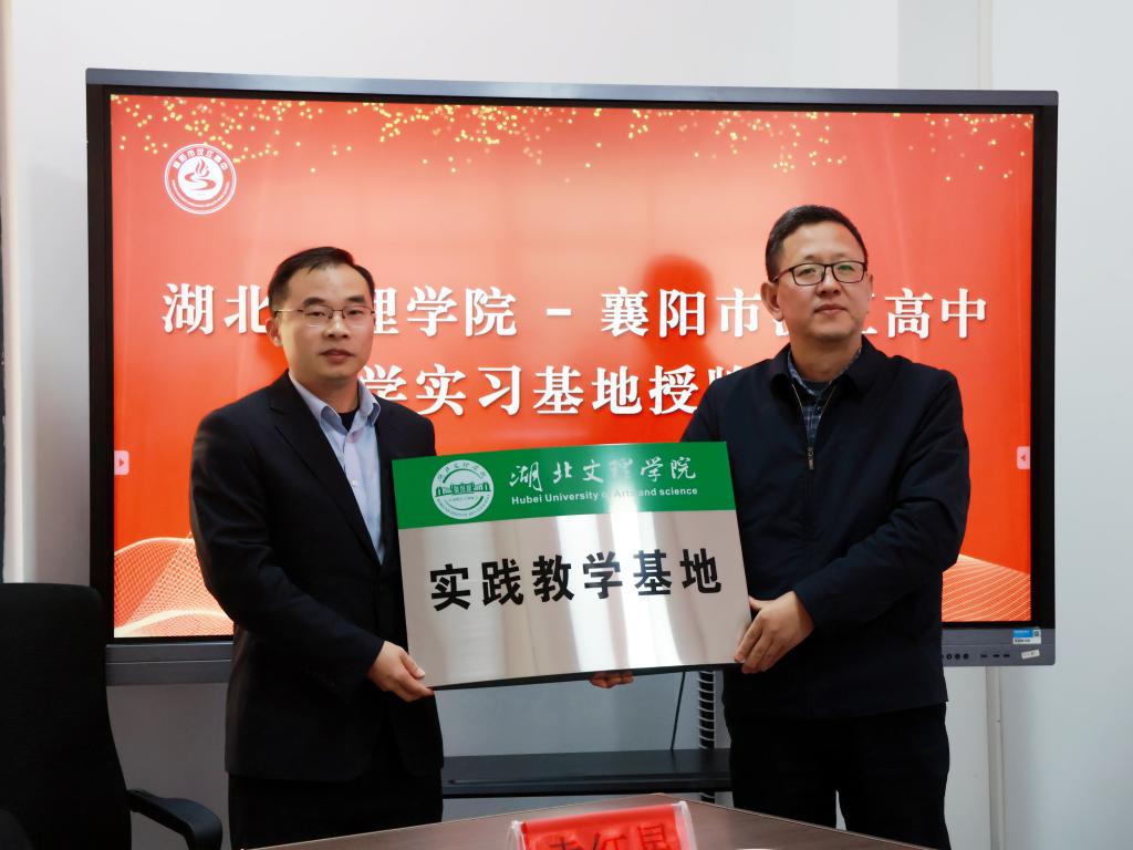 袁红星代表学院与襄阳市汉江高中签订实践教学和就业基地合作协议,并向襄阳市汉江高中实践教学基地授牌。