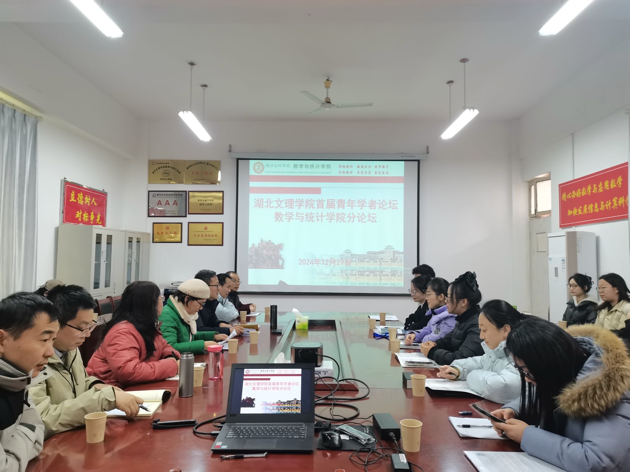 (数学与统计学院 通讯员 耿付荃)12月27日上午,学校举办首届青年学者论坛。本次论坛以“才聚湖文 共创未来”为主题,旨在汇聚海内外青年才俊,深化交流合作,共享发展机遇,共创美好未来。12月27日下午,数学与统计学院与青年博士举行青年学者论坛分论坛学术研讨会。论坛邀请中国地质大学(武汉)王凡芮博士、华中师范大学刘晨晨博士、北京理工大学王号然博士、武汉科技大学周俊爽博士、中南大学黄莹博士。学院党委书记袁红星、院长丁凌、副院长唐波、张敏捷,青年博士教师及研究生代表参加论坛。论坛由院长丁凌主持。