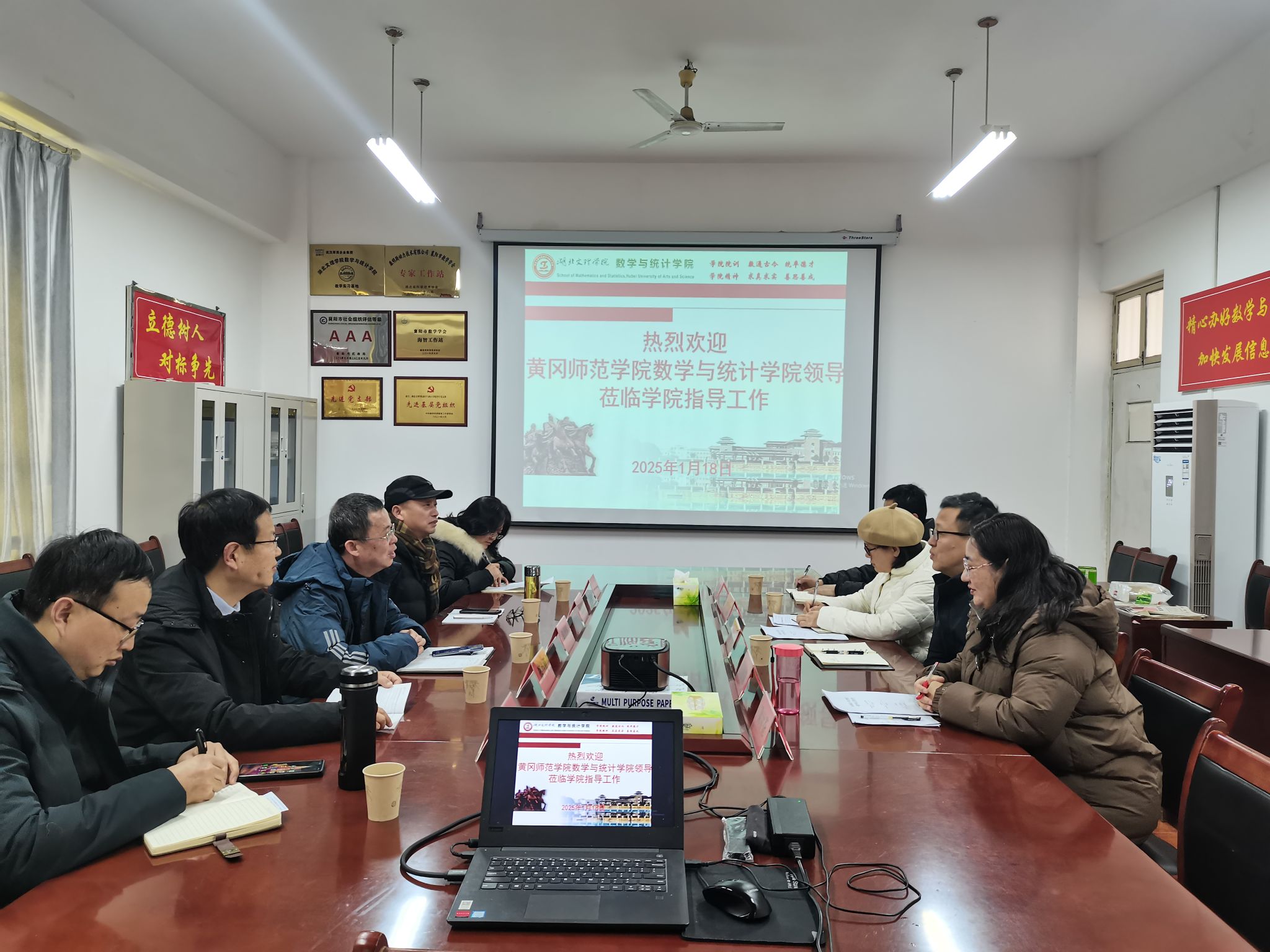 (数学与统计学院 通讯员 耿付荃)1月18日,黄冈师范学院数学与统计学院党委书记陈世辉、院长杨族桥等一行5人来学院调研交流。学院党委书记袁红星、院长丁凌、副院长张敏捷热情接待陈世辉一行并参加座谈交流。座谈会由学院党委书记袁红星主持。