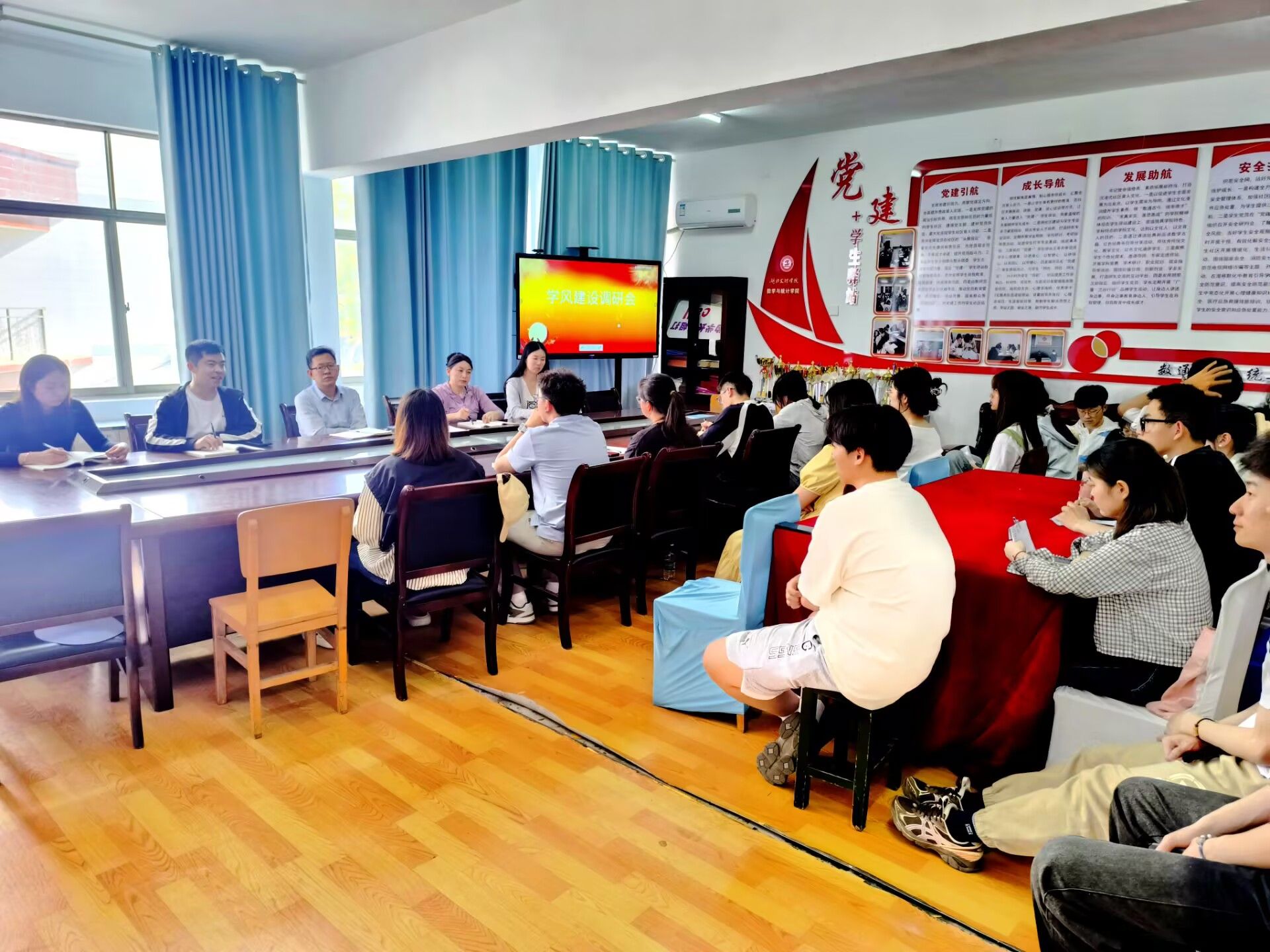 (通讯员 数统学院 卢京希 赵微)为深入贯彻落实中央八项规定精神,扎实推进学风建设,4月10日下午,数学与统计学院在学生公寓15栋“党建+”一站式学生驿站召开学风建设调研座谈会,学院党委书记袁红星、党委副书记姚威、全体辅导员及学生党员、班干部代表参会。座谈会由党委书记袁红星主持。