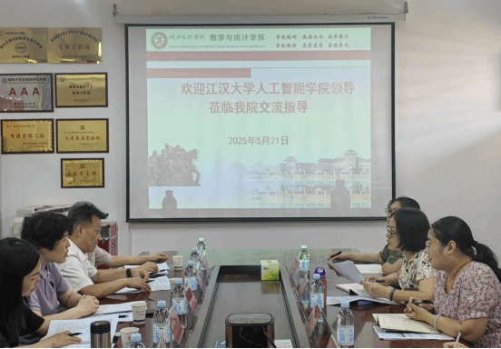 (数学与统计学院 通讯员 肖氏武)2025年5月21日,江汉大学人工智能学院副院长万优艳、胡晓莉等一行6人来学院交流硕士点建设与申报相关工作。学院院长丁凌、副院长张敏捷等热情接待万优艳一行并参加座谈交流。座谈会由学院院长丁凌主持。