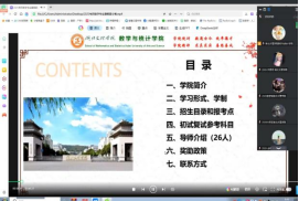 丁凌、张敏捷、梁霄、陈仕军、周景科、陶茂虎、王前等硕士生导师详细介绍了数学学科各研究方向。本院25届考取我院研究生的优秀毕业生代表杨梦瑞、索东昱进行考研经验分享。