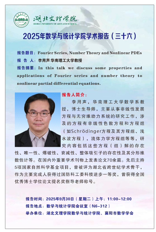 【学术报告】2025年数学与统计学院学术报告(36)