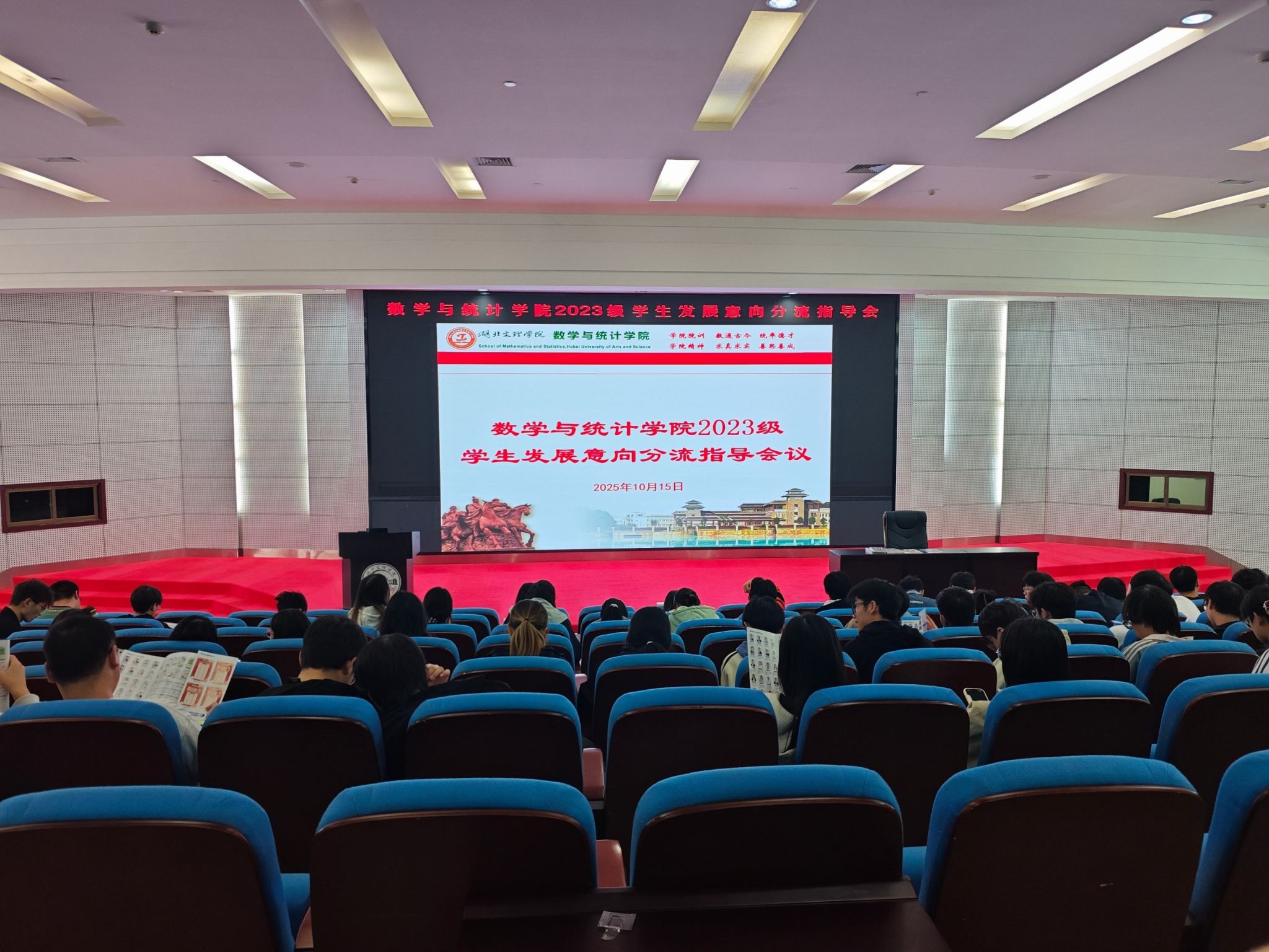 (数学与统计学院 赵微)为帮助学生明晰个人发展方向,提升学生考研就业能力,2025年10月15日,数学与统计学院在图书馆三楼报告厅举行2023级学生发展意见分流指导会,会议特别邀请研途教育和灵鹏教育的资深培训师为同学们提供指导。本次会议由2023级辅导员赵微主持,2023级全体学生参会。