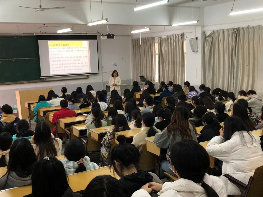 活动伊始,赵秀菊老师为同学们介绍了本次教育见习活动的相关注意事项以及开展本次活动对于同学们成长的重大意义,以此来调动同学们的积极性,大家集中精力,认真听讲,调整好心态,认识教育见习的目的和意义。随后,赵秀菊老师为同学们介绍了本次见习活动的具体安排,参加教育见习的成员被分为十一组,见习活动将以小组的形式完成。并且学院为每一个小组安排了指导老师,相信在指导老师的带领下,本次见习活动一定可以取得显著的成效。张旻嵩老师在讲话中提出,本次教育见习因疫情原因只能在校内进行,同学们要制定明确的见习目标,认真思考教育见习的意义,希望同学们克服困难,圆满完成见习任务。